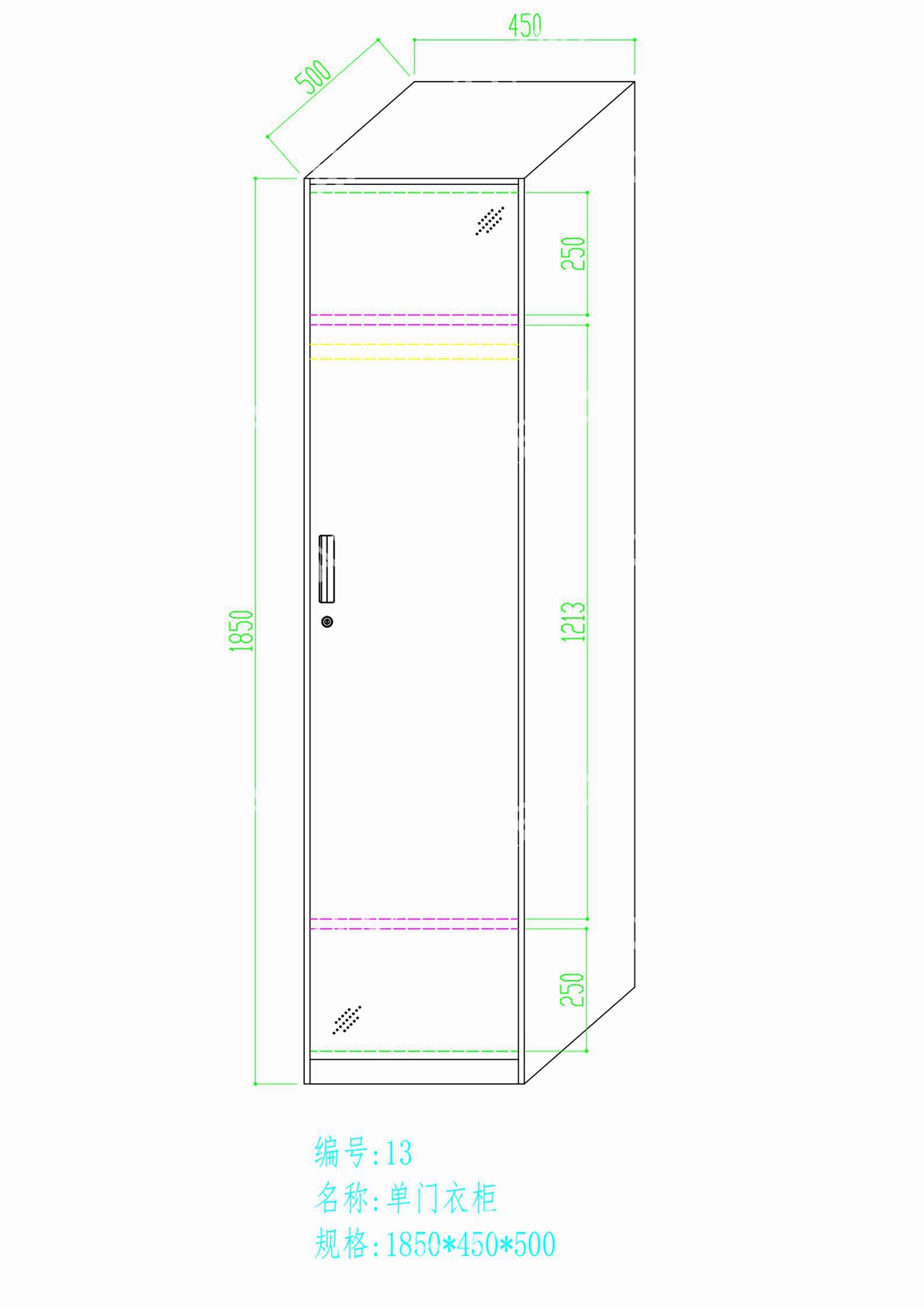 Hardware configuration: high-quality cold-rolled steel plate, environmentally friendly electrostatic spraying, mechanical lock, password lock (optional), adjustable shelves, adjustable foot, clothes hanger, small mirror, cabinet door label frame (optional)