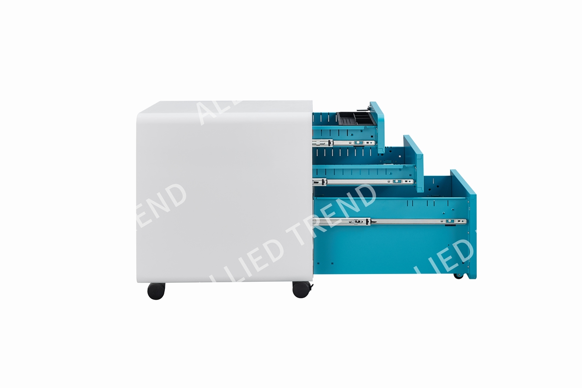 high-quality cold-rolled steel plate, environmentally friendly electrostatic spraying, 3-section silent sliding rail, high-quality load-bearing universal wheel, fully extended load-bearing drawer, anti-tipping device, mechanical lock, password lock (optional), stationery box, file rack adjustment rod, seat cushion (optional)