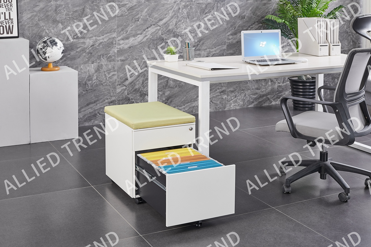 high-quality cold-rolled steel plate, environmentally friendly electrostatic spraying, 3-section silent sliding rail, high-quality load-bearing universal wheel, fully extended load-bearing drawer, anti-tipping device, mechanical lock, password lock (optional), stationery box, file rack adjustment rod, seat cushion (optional)