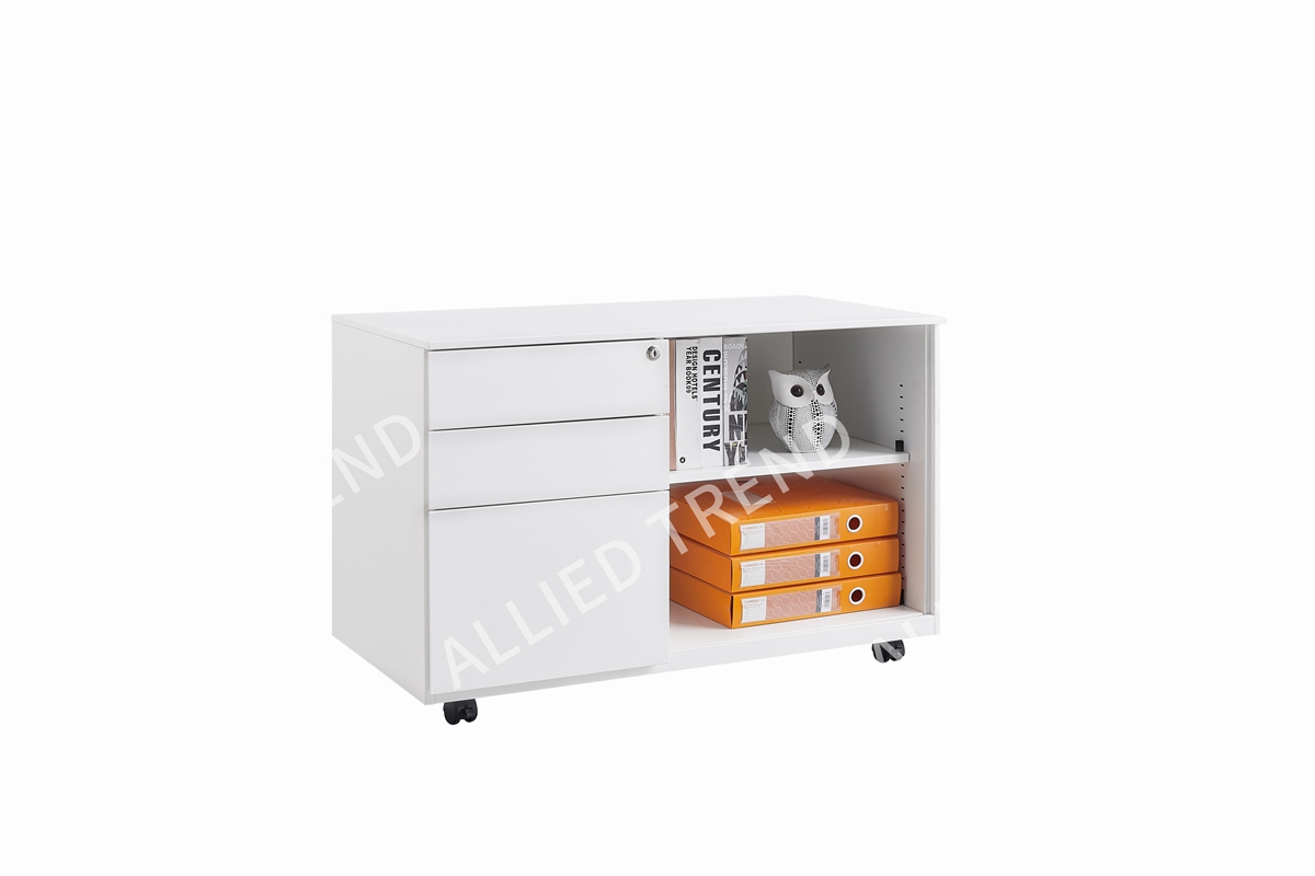 PVC high-quality rolling door, high-quality cold-rolled steel plate, environmentally friendly electrostatic spraying, 3-section silent slide rail, high-quality load-bearing universal wheel, fully extended load-bearing drawer, anti-tipping device, mechanical lock, password lock (optional), stationery box, file rack adjustment rod